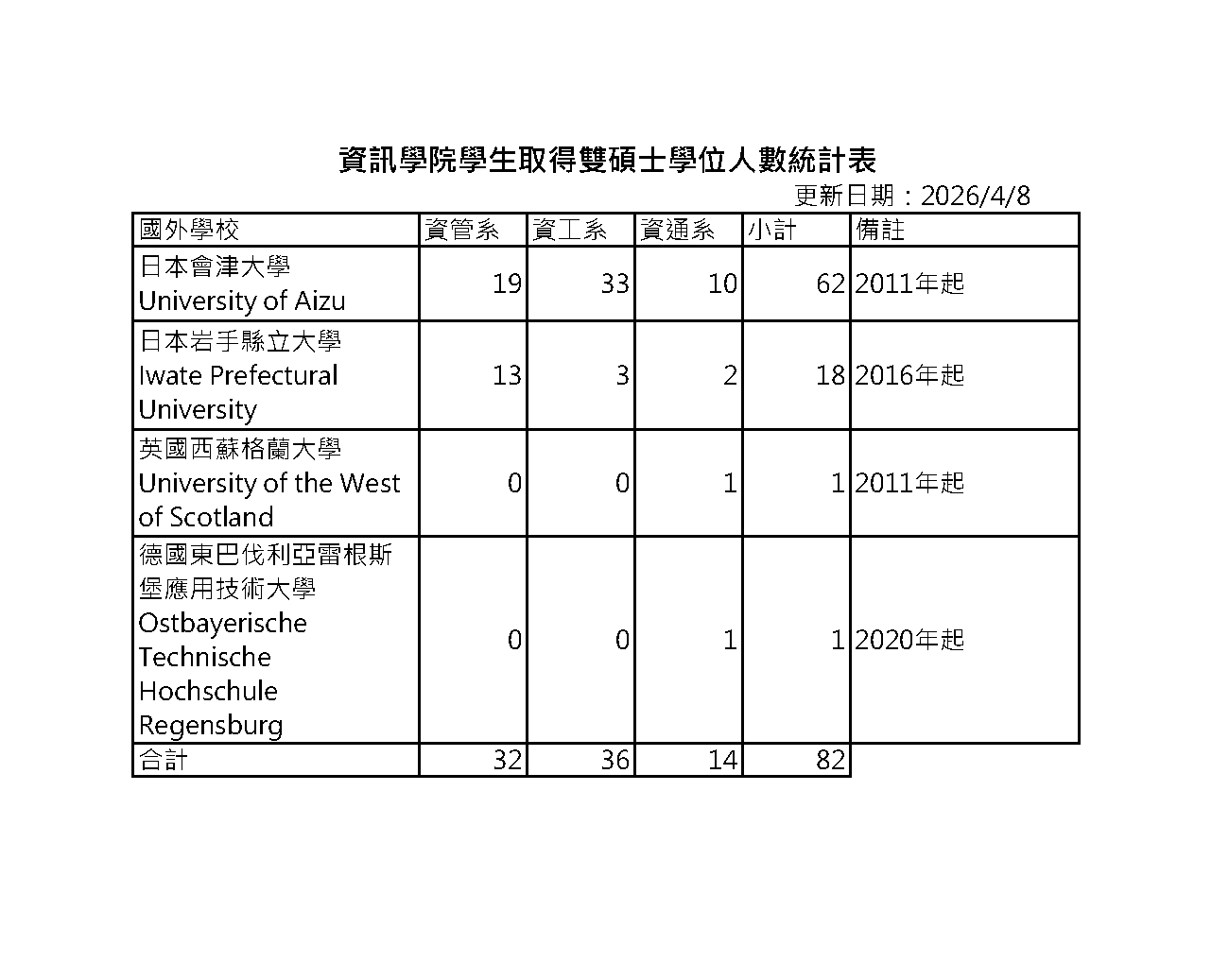 歷年雙碩士人數統計